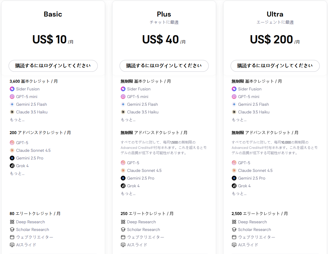 上記料金は月間契約の月額費です。参考:https://sider.ai/ja/pricing?trigger=web_f_homepage