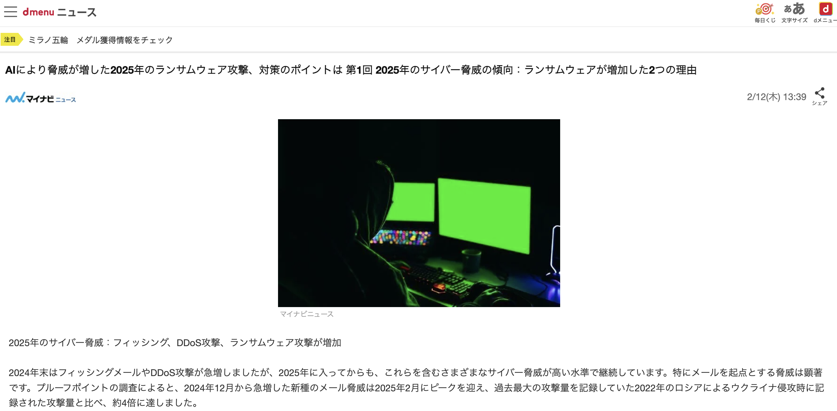 dmenuニュース「AIにより脅威が増した2025年のランサムウェア攻撃、対策のポイントは 第1回 2025年のサイバー脅威の傾向:ランサムウェアが増加した2つの理由」