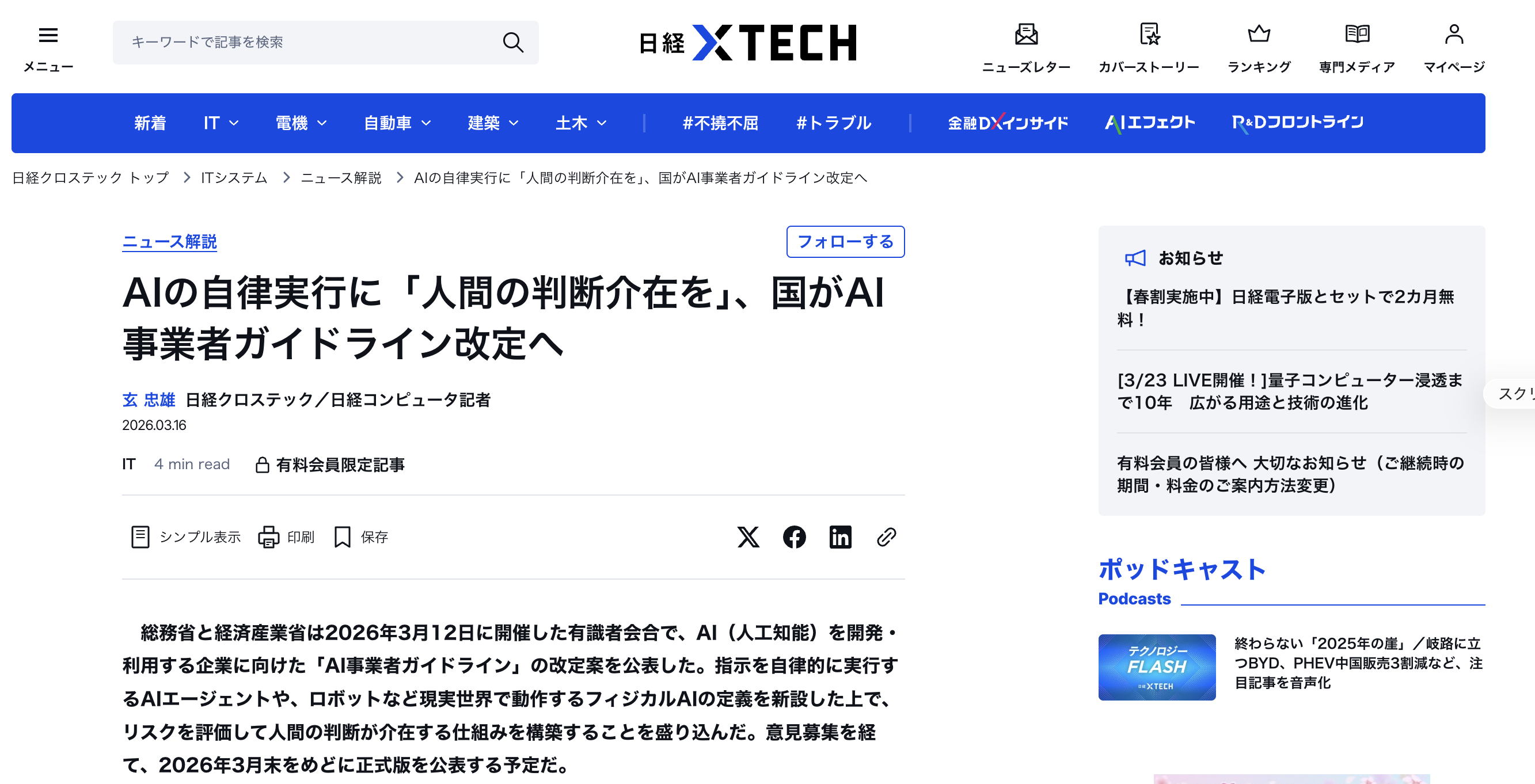政府(総務省・経済産業省)は、2025年にも「AI事業者ガイドライン」を改定する方針を固めました。キーワードは「人間の判断の介在」です。