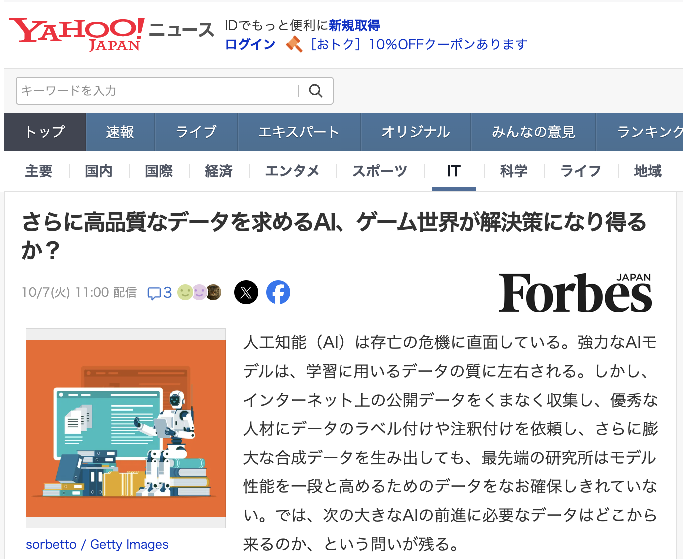 - AI開発は「データ枯渇」という深刻な課題に直面している。
