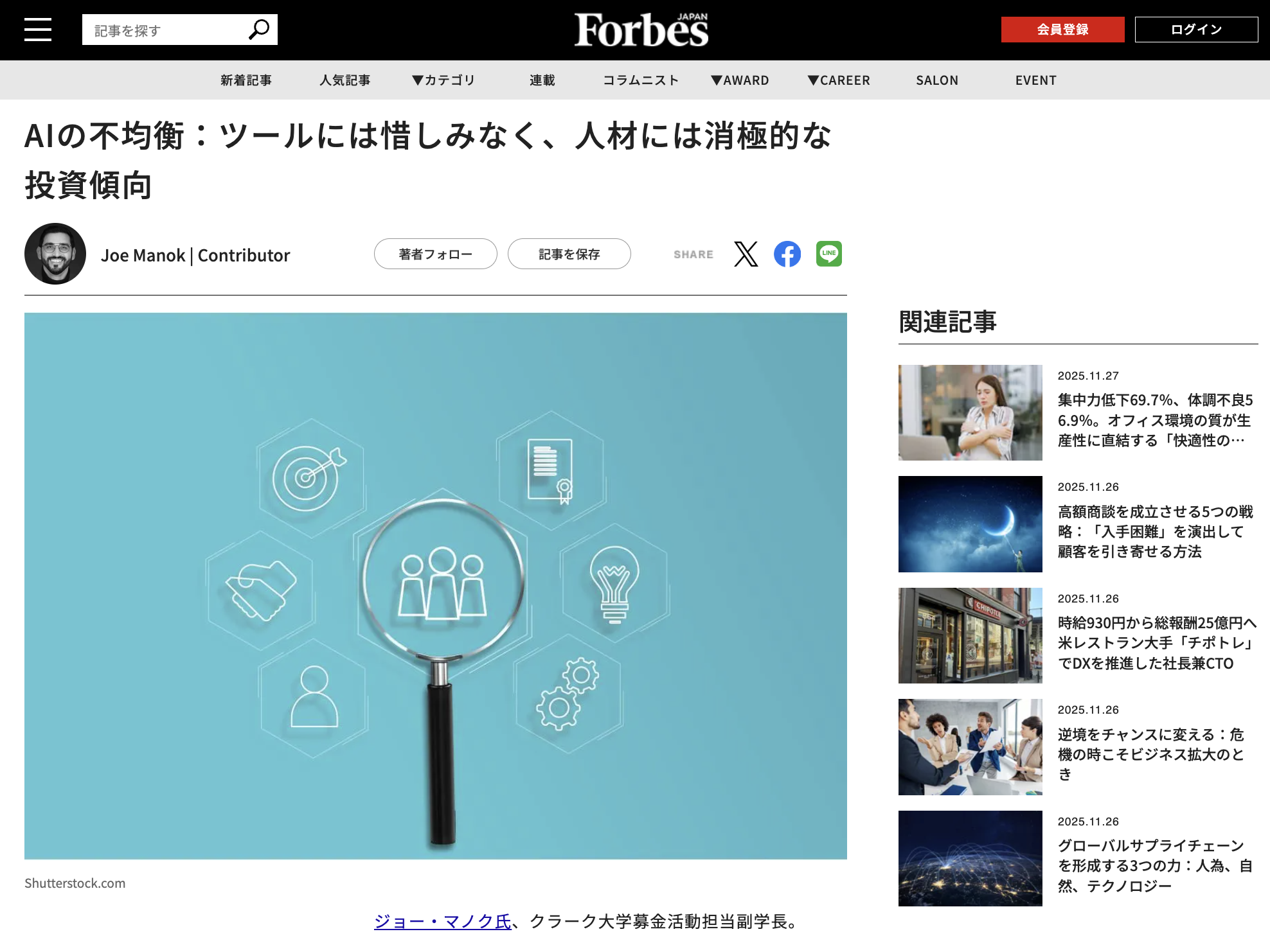 今回は、フォーブス誌でも取り上げられた最新の議論をベースに、多くの日本企業が陥っている「ツール偏重・人材軽視」の罠と、そこから脱却するための現実的な処方箋について、じっくりお話ししたいと思います。
