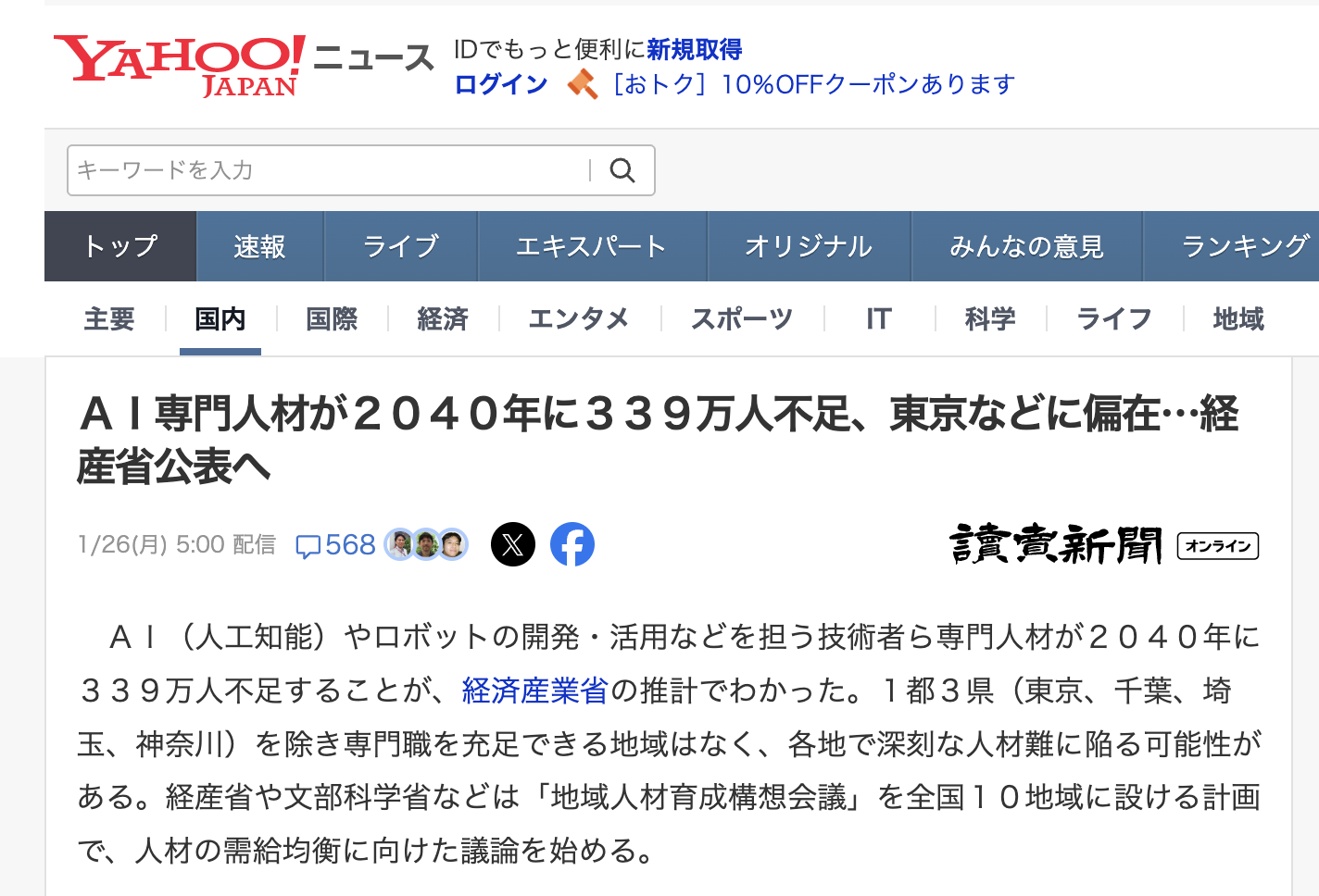 経済産業省が新たに公表する予測によれば、2040年、日本国内でAIを使いこなす専門人材は、需要に対して約339万人も不足するというのです。さらに深刻なのは、それらの人材が東京などの大都市圏に「偏在」しているという事実です。