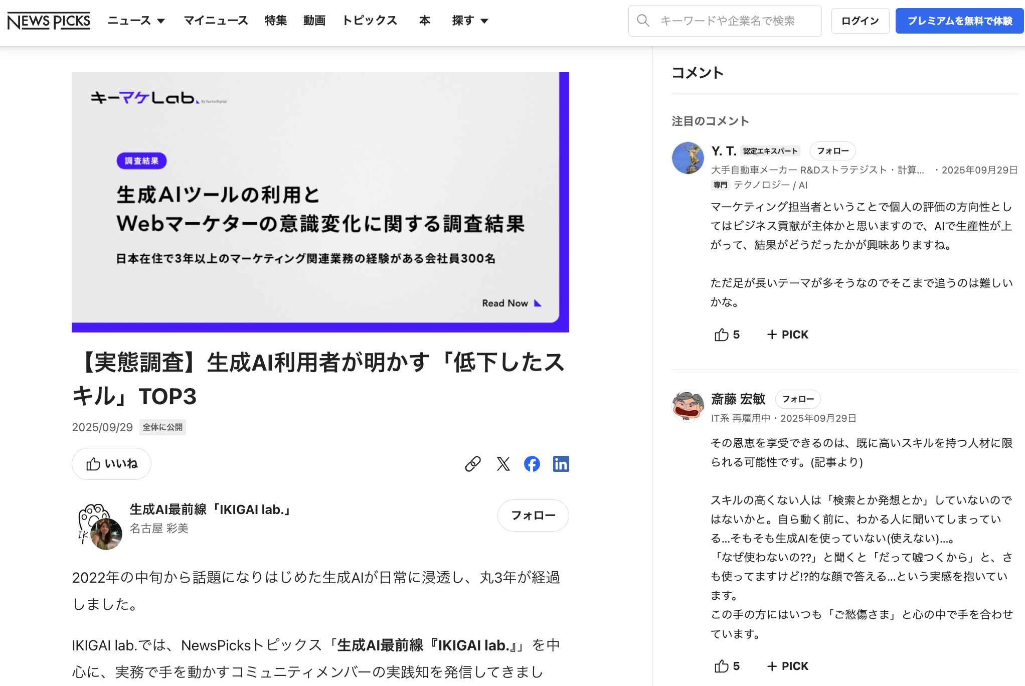 本調査が突きつけたのは、AIが私たちの能力を拡張すると同時に、私たちの弱さや怠惰さを浮き彫りにするという現実です。AIは、使う人間に思考力があればその思考を増幅させ、思考を放棄すればその人間の思考力そのものを奪っていく、恐ろしいまでに正直な鏡なのです。