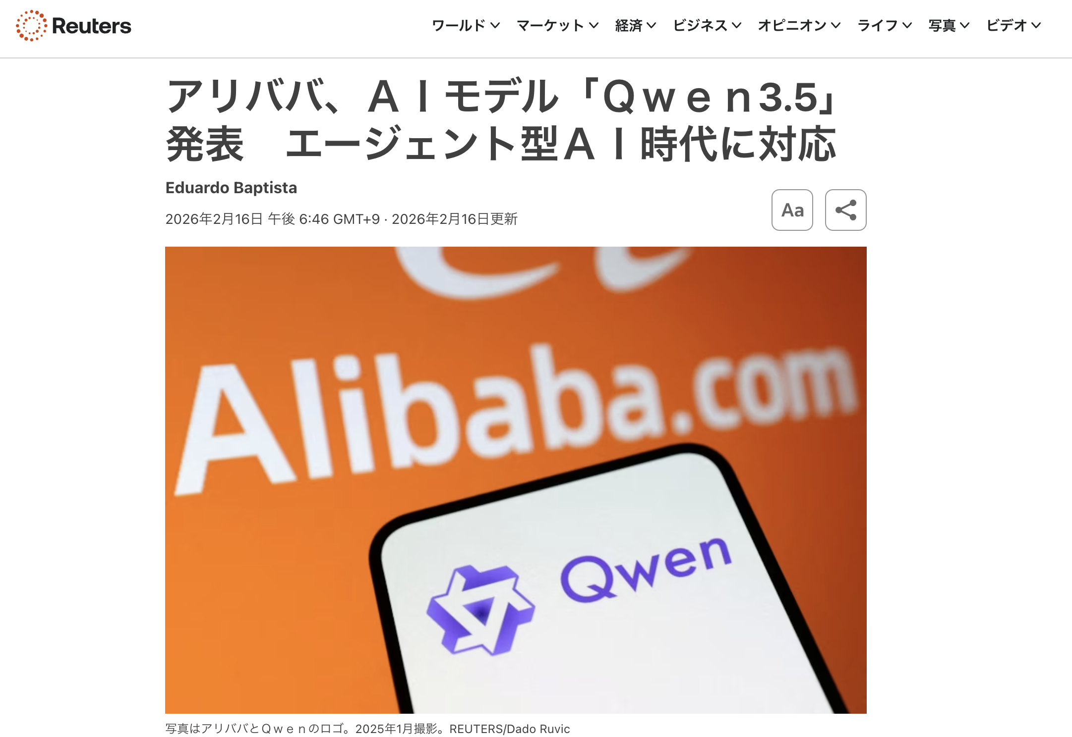 北京からのロイター通信の速報は、AI業界に冷や水を浴びせました。アリババグループが発表した「Qwen(通義千問)3.5」は、単に計算が速くなっただけではありません。