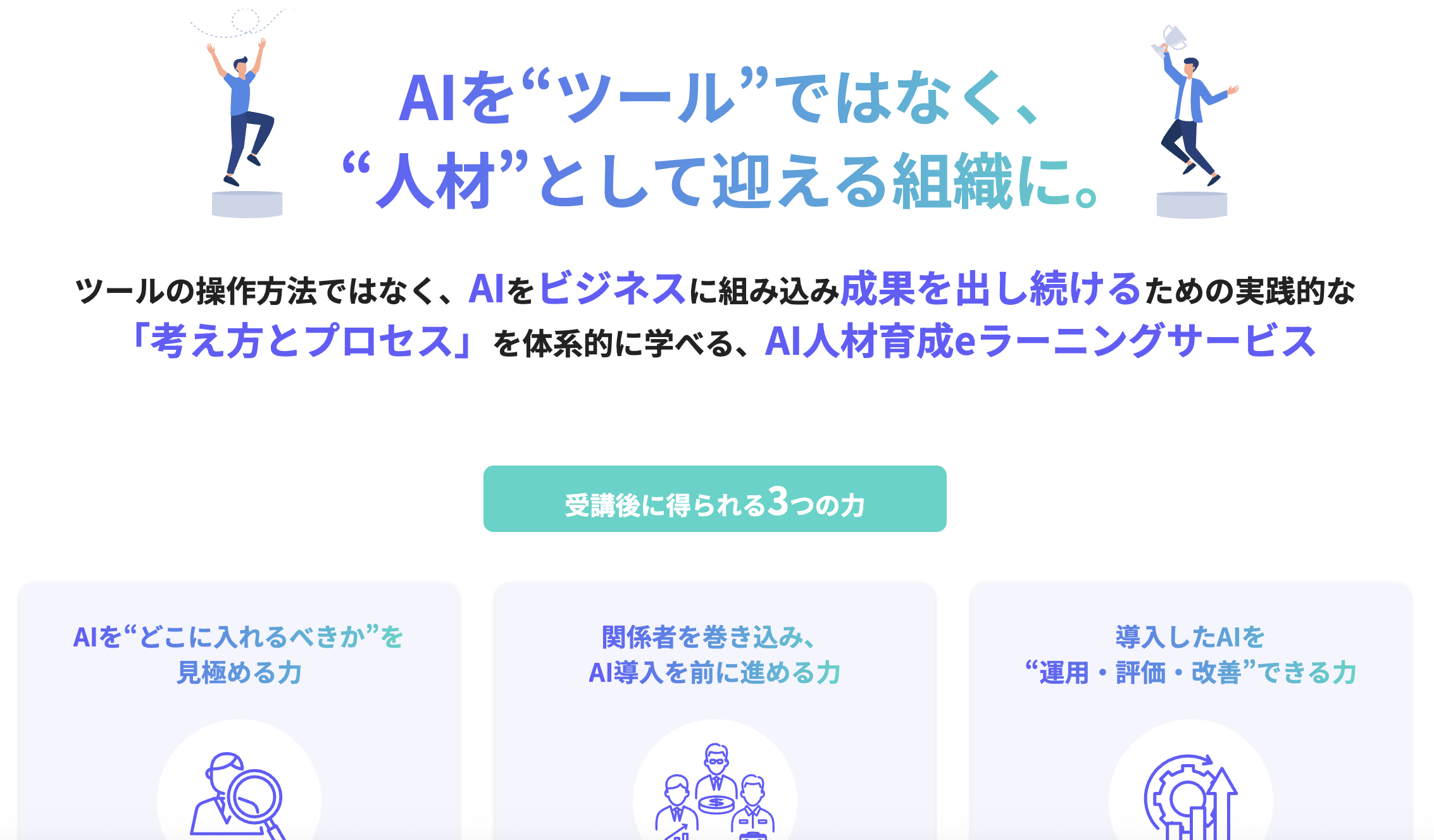 一言で表現するなら、「AI導入と活用のプロセスに特化した教育サービス」です。