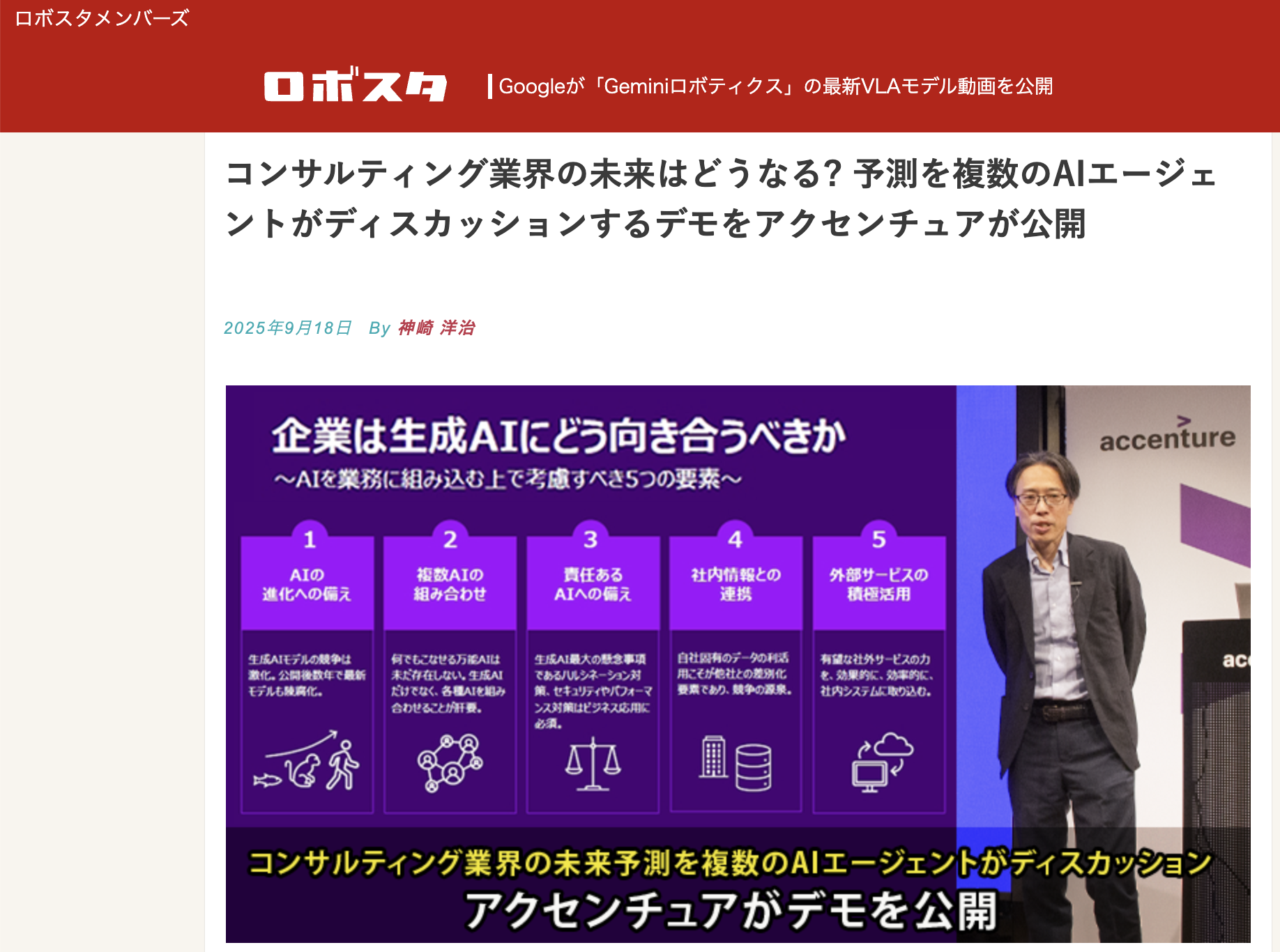 ロボスタ「コンサルティング業界の未来はどうなる? 予測を複数のAIエージェントがディスカッションするデモをアクセンチュアが公開」