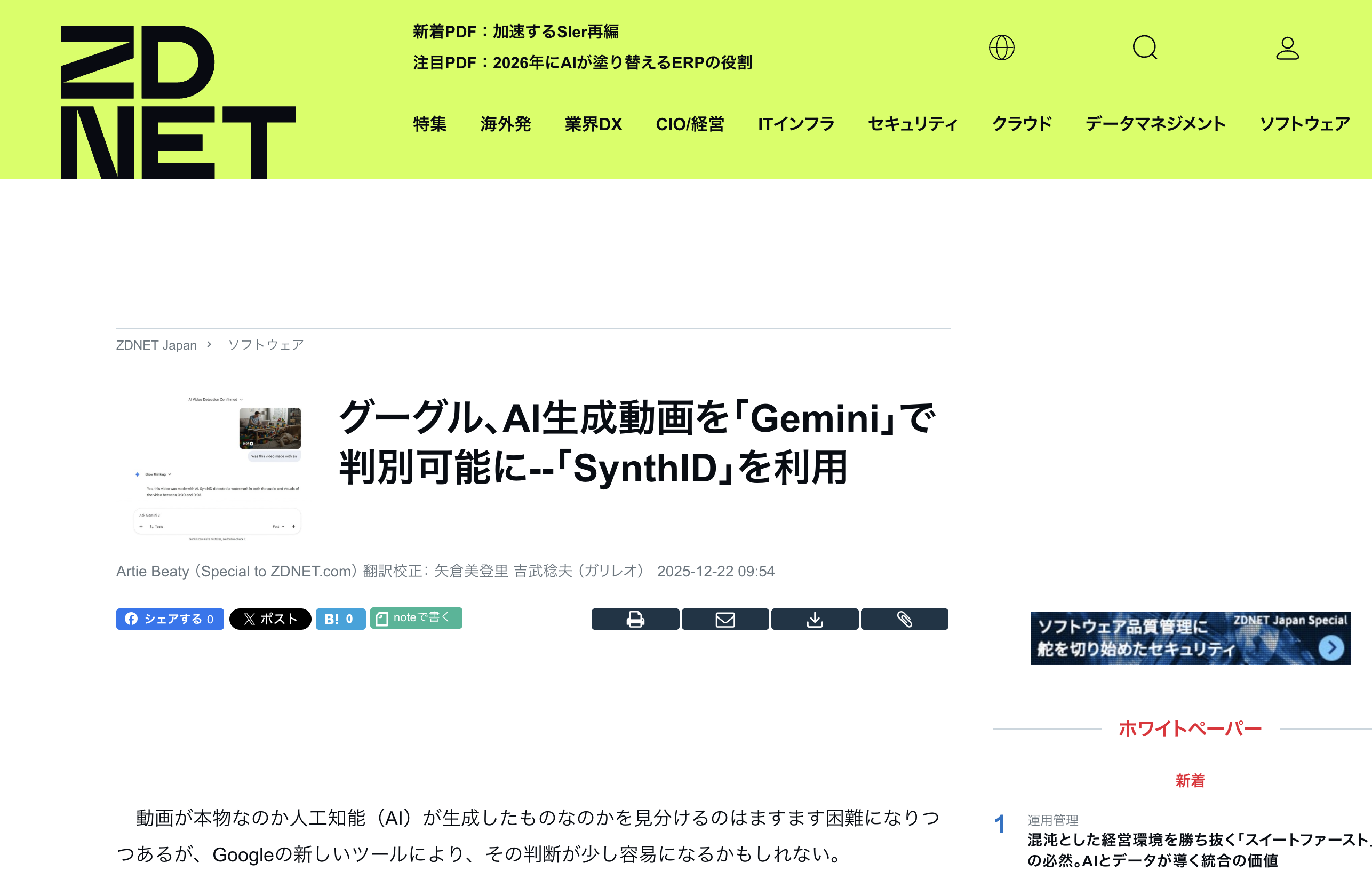 今回の記事では、このGoogleの新機能の裏側にある技術「SynthID」について解説しつつ、私たち企業がこれから向き合うべき「情報の信頼性」について、経営企画やDX、情シスの皆さんと一緒に考えていきたいと思います。小手先のニュース解説ではなく、これからの企業防衛の羅針盤となるような内容をお届けします。