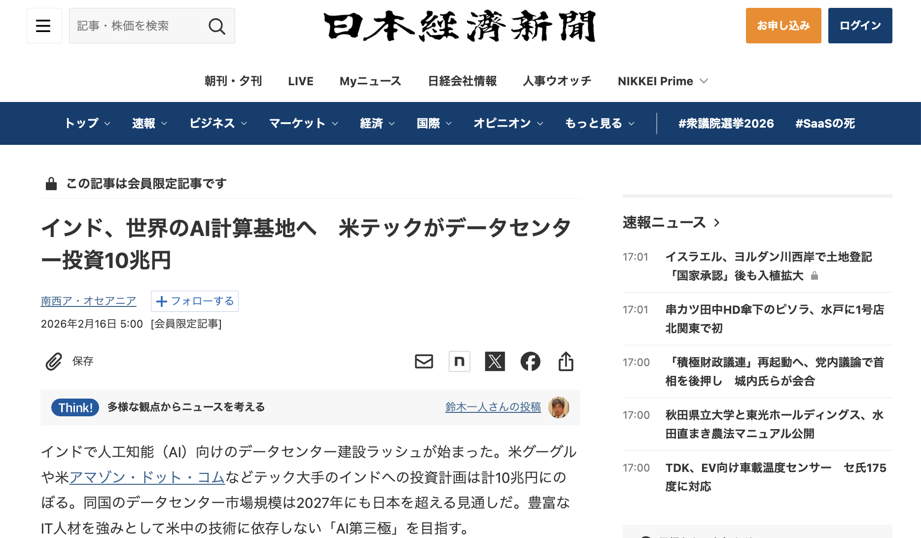 - 爆発的な国内需要: 14億人の人口がデジタル化し、あらゆるサービスにAIが組み込まれ始めています。「自国で生成されたデータは自国で処理する」というデータローカライゼーションの流れも、現地データセンターの需要を後押ししています。