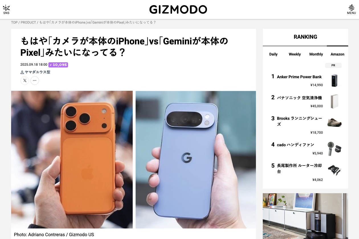 「カメラが本体のiPhone」か、「Geminiが本体のPixel」か。