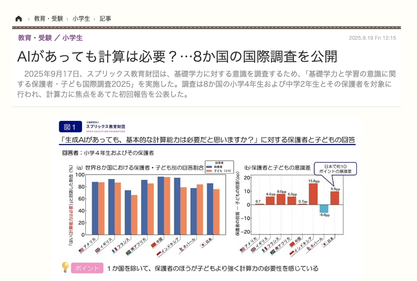 こうした文化的な背景が、AIという便利なツールが登場してもなお、基礎となる計算力を大切にしようという意識に繋がっているのではないでしょうか。