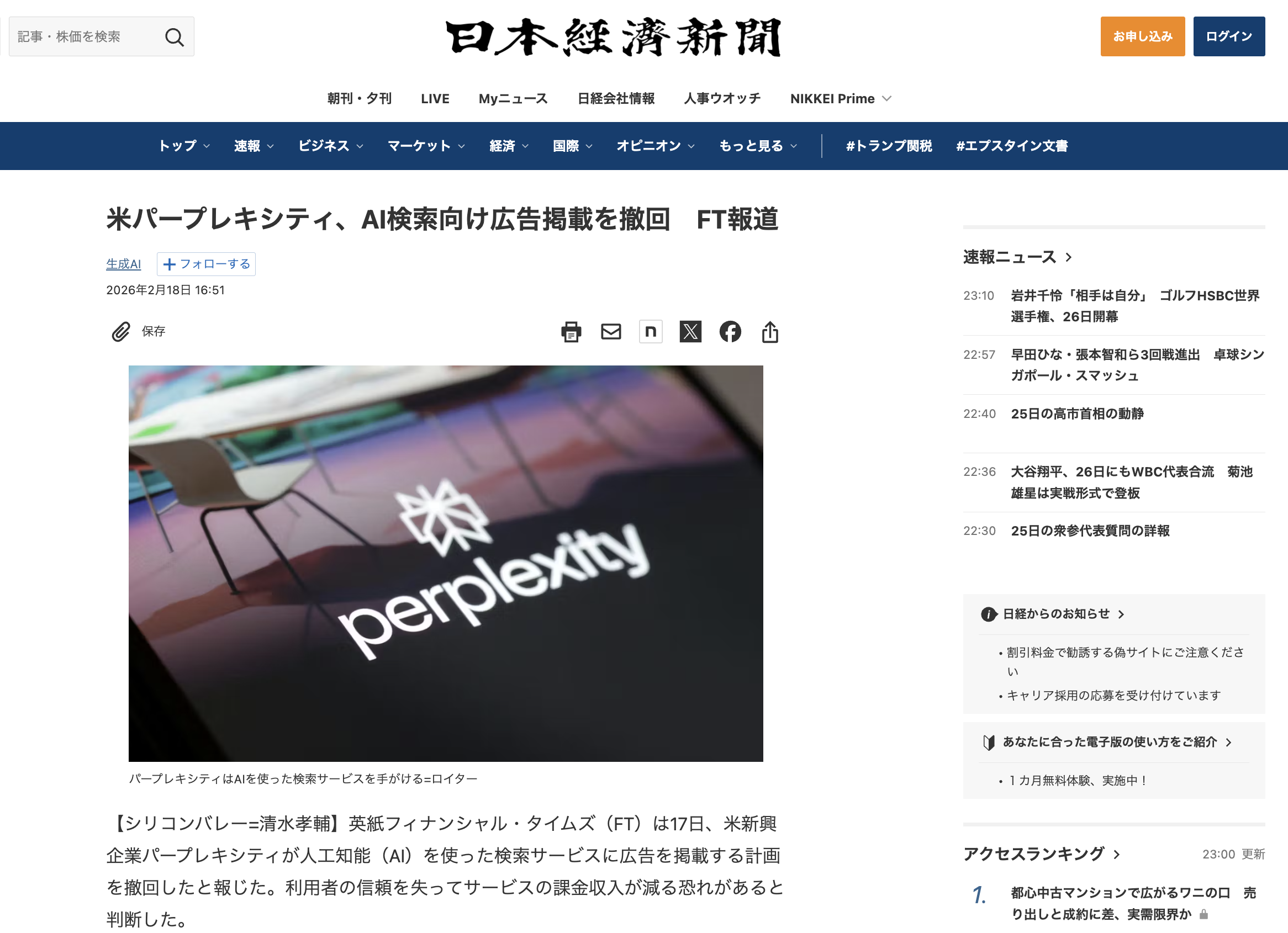 米AI検索スタートアップのPerplexity(パープレキシティ)が、検討していた広告掲載計画を撤回したというニュースが世界を駆け巡りました。この決定は、日々膨大な情報と戦う経営企画部やDX推進部にとって、単なる「画面が見やすくなる」以上の、極めて重要な意味を持っています。
