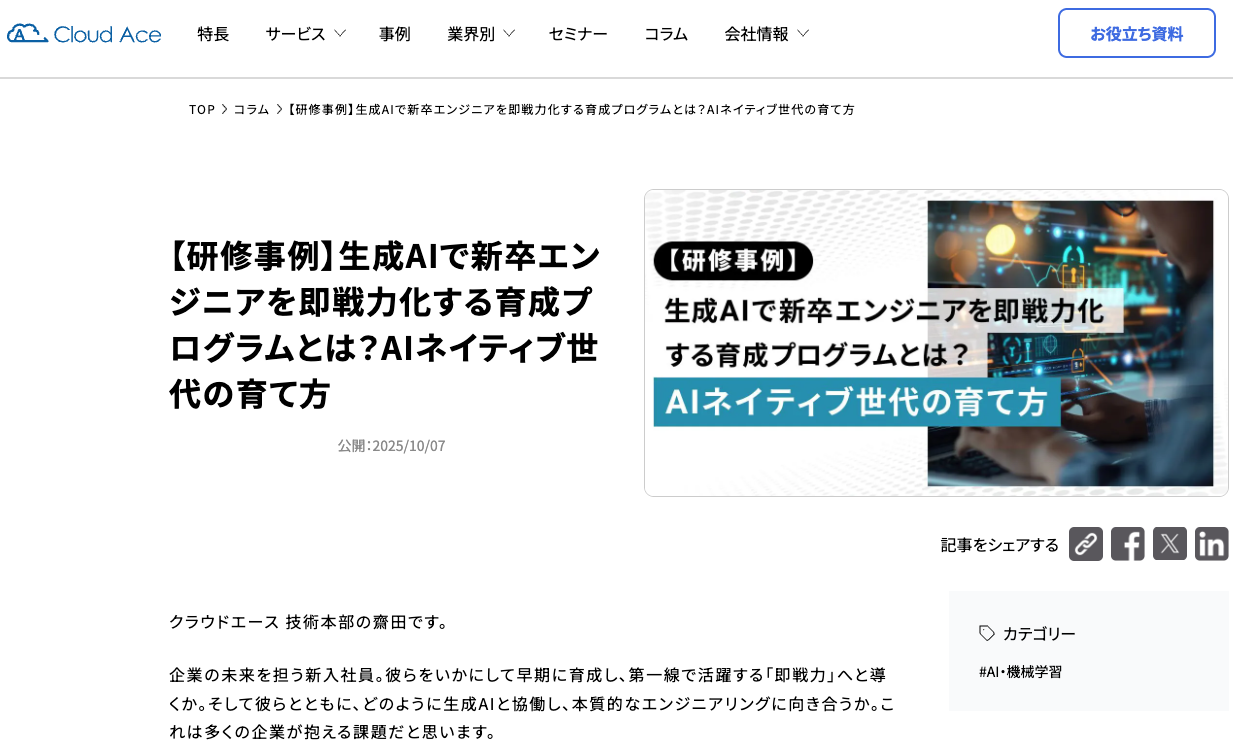 理論は分かったけれど、実際に成功している企業はあるのだろうか?――そんな疑問にお答えするため、ここではGoogle Cloudのプレミアパートナーである株式会社クラウドエース様が実践する、先進的な新卒エンジニア研修の事例をご紹介します。