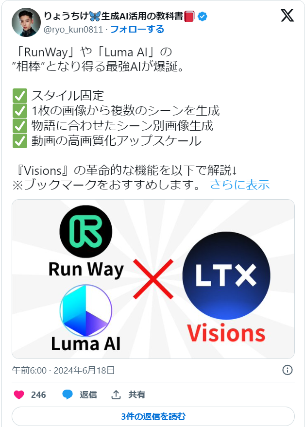 X りょうちけ株式会社ALLAI CEO(@ryo_kun0811)「「RunWay」や「Luma AI」の”相棒”となり得る最強AIが爆誕 」